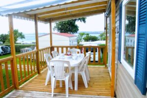 Offrez-vous un séjour tout confort dans notre mobil-home premium maxi avec vue sur la mer, l’un des hébergements les plus spacieux et les mieux équipés du camping. Conçu pour accueillir confortablement jusqu’à 5 personnes, il allie volumes généreux, prestations soignées et situation exceptionnelle face à l’océan.