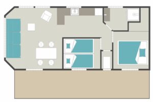 Visuels non contractuels – L’aménagement du mobil-home peut varier du plan en fonction du modèle